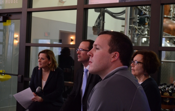 Tariffs Hurt the Heartland hosted a panel about the tariffs at Dancing Goat Distillery in Cambridge, Wisconsin on Monday. Jay Maas, the distillery’s director of finance and administration, said a 25 percent tariff on Chinese glass is making it more expensive to get the custom bottles for the distillery’s products.