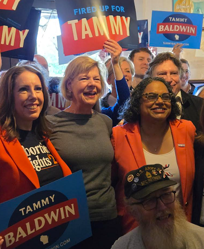 "On the issue of our reproductive rights and freedoms, Eric Hovde celebrated the Dobbs decision and the overturning of Roe v Wade," Baldwin said. "and whatever he says now he now owns the chaos that has ensued. As you heard, I am leading the charge in the United States Senate to restore Roe v Wade to the entire nation," Baldwin said to applause and cheers.