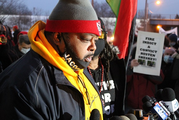 Speaking to reporters outside of the RegiMen Barber Collective on 52nd St. just before a march through town, Blake urged citizens to protest. "We have to make some noise and be heard," Blake said. "We can't sit around anymore.