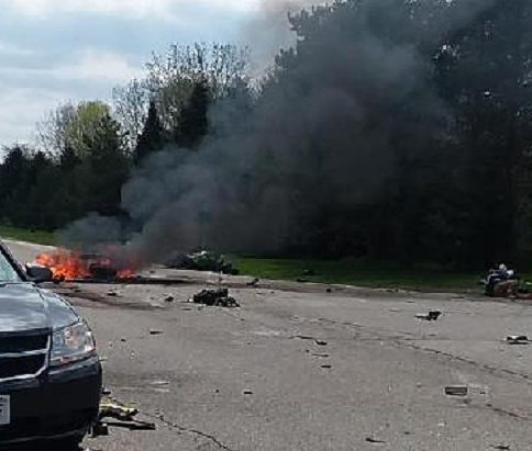 The drivers of two motorcycles were seriously injured in a collision that involved a car near Prairie Lane Elementary on Springbrook Road in Pleasant Prairie Tuesday afternoon. “We heard motorcycles racing down the street,” a neighbor said. “We heard kids screaming from the school. We thought the crash happened in the school parking lot or in the schoolyard. Then we see teachers running west of the school where the accident took place,” he said. The apparent high-speed crash set one cycle on fire. Police said one of the cyclists--a 22 year-old man from Pleasant Prairie--had significant but not life-threatening injuries while the second motorcyclist--a 19-year-old Kenosha man--had less serious injuries. The driver of the car wasn't hurt. Police are still trying to piece together what happened.