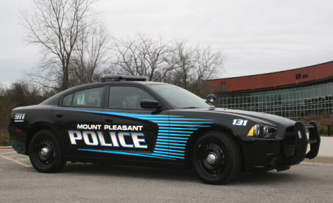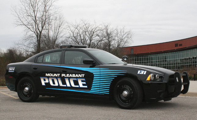 Lending a helping hand, Mt. Pleasant officers laid down tire-puncturing stop sticks at “KR”. Two of the four tires on the offending vehicle were punctured, but the vehicle continued north, albeit at a slower speed.
