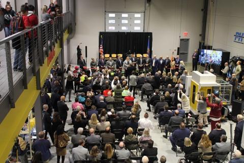 Several hundred people attended Tuesday's ceremony, including REAL School students. It was held amidst various machines in an expanded Tarnowski Hall, which opened just six years ago as part of the building's first addition.