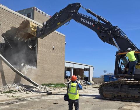 To mark the beginning of the end yesterday, Racine Mayor Cory Mason climbed onto an excavator and addressed a small crowd that had gathered to witness the start of the project. "It's a bit bittersweet because there were a lot of great memories that were made in this place," he said. "We're sad to see it go but we're excited about what the future can bring."