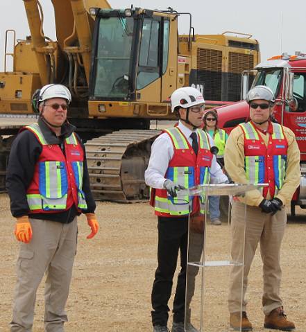 Jelen was flanked at the announcement by County Exec Jonathan Delagrave and Mt. Pleasant Village President Dave DeGroot. Representatives of the subcontractors stood behind them.