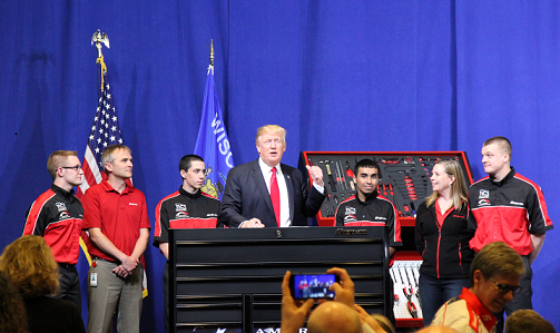 In the audience at Snap-On Tuesday for President Trump’s speech, 21 year-old Josh Brewer was less interested in the president’s policy proposals than he was in what Trump had to say about the importance of manufacturing and technical education.