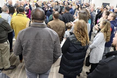 A large overflow crowd packed the room for comments from Shalom Center Director Tamarra Coleman.