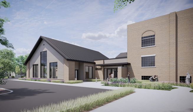 According to City Plan Commission documents, the addition would connect the two main buildings on the site---the school and the church itself. The new structure would include additional office space and what's described as a "gathering hall."