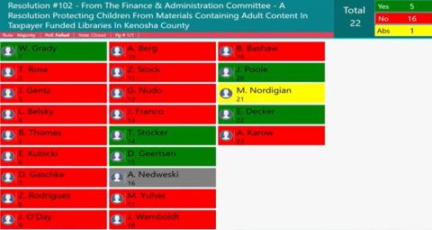 (WGTD)---The Kenosha County Board voted Wednesday night to reject taking on the role of, as one supervisor put it, public library "smut-buster."