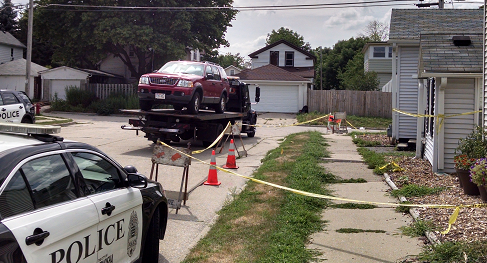 Police remained at the scene---the corner of 59th Pl. and 4th Ave., about a block west of Eichelman Park. Tow trucks were observed removing vehicles from the property.