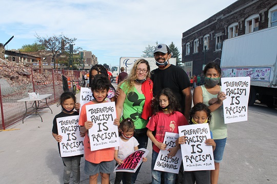 Then it was a trip to the uptown area to view the damage there and demonstrate support for racial justice. All of the kids carried signs reading “Tolerating Racism is Racism.”