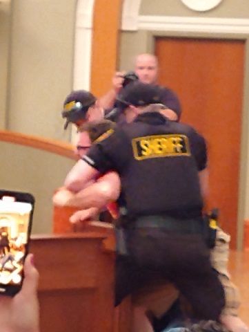 (WGTD)---He’s back. When we last saw him, Joel Trudell was in the process of being pried away from a Kenosha County Board podium during citizen comments after a verbal altercation with the county board chairman.