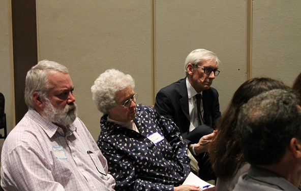 The listening session on the state’s budget was held at the Kenosha Public Museum and drew about 150. Participants split up into five discussion groups to tackle various key topics. Evers, blending in with the crowd, rotated between the groups, acting mostly as an observer.