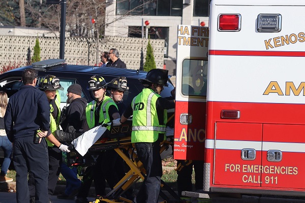 An officer responding to the report was involved in a "very serious" traffic accident and was taken to the hospital for treatment. The officer is in stable condition and is recovering, according to Patton. It appeared that the police officer lost control of his squad car, drove up the curb and struck a small tree. The squad car's airbags were deployed.