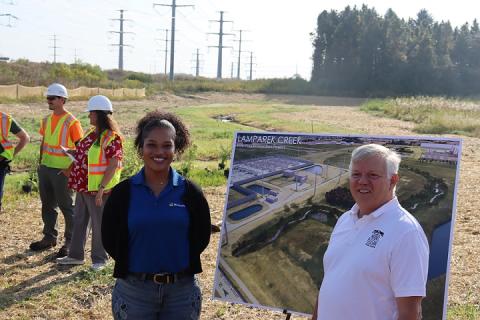 The Lamparek Creek project includes planting native vegetation with deep roots to absorb carbon. The new meandering route of the water flow will help to reduce runoff, filter out pollutants, minimize flooding and create a better habitat for fish and wildlife.