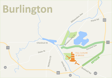The construction of the round-a-bout and the demolition of the bridge began this week. 142 is closed during the construction.