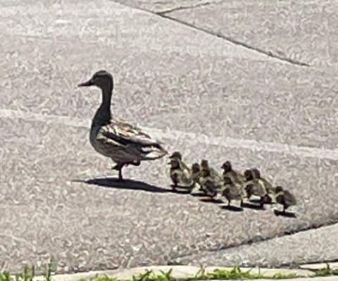 They eventually found the ducklings--huddled together in the shade--and mom hiding elsewhere. They soon theorized that the mother--out of frustration for not being able to lead her babies to water--had begun to pluck out her own feathers. "She was pacing back and forth for awhile," said Townsend, the Stella's chief building engineer. "It seemed like she was starting to give up," he said.