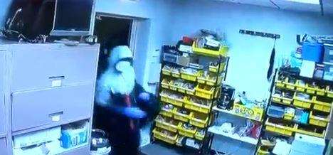 A photo from security footage from the May 1st robbery at McTernan Wireless accompanies this story.