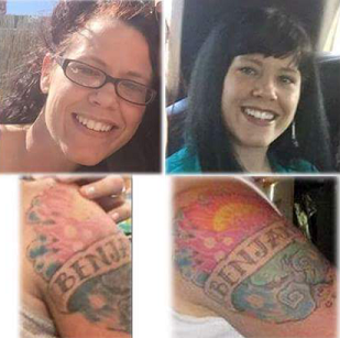 Jill Hawkins was last seen wearing jeans and a short sleeve brown sweater. She has a tatoo on her left arm.