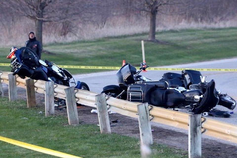 Wilmot--One person died and four others were injured in a collision that involved several motorcycles on a curve on Fox River Road.