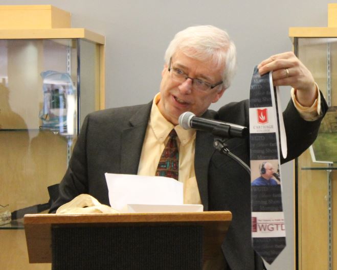 At the end of the remarks, Greg was presented with a personalized tie that included the Carthage flame and WGTD's logo, adding to a large collection of ties for which he's known.