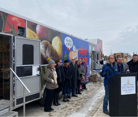 Milwaukee’s Hunger Task Force and Malicki’s Piggly Wiggly have teamed up to stock a semi-trailer that’ll be pulled around town to various locations.