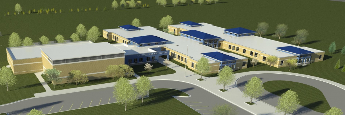 Racine Unified's new Olympia Brown Elementary School, on 5 1/2-Mile Road, in Caledonia, is ready and waiting for next week Thursday when students arrive to begin the new school year. Last night there was a dedication ceremony held that included some of those students, as well as their parents, who paid to help make it happen. Village Administrator Tom Christensen, who gets to do another dedication with Gifford next week, said the new Olympia Brown school is another exciting step forward in Caledonia's future. Racine Mayor John Dickert said regardless of municipal borders, new schools benefit the community as a whole, but more importantly, show that the community wants a better future. Like the ceremony last week for the new Knapp School, the crowd for the Olympia Brown ceremony got to walk through the new building, which replaces the aging and outdated lakeside facility. Next Wednesday is a dedication for the addition to Gifford, making it a K-8 campus. (Photo is an artist rendering)