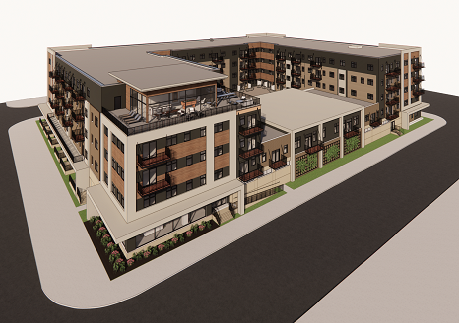 The favored project is to be located on a block that now contains a city-owned parking lot and an abandoned bank drive-thru and is kitty-corner to the first. The second project is a smaller, five-story building with 158 apartments with two levels of parking, one underground and the other at surface-level. The living units will include a mix of studio, 1, 2 and 3 bedroom units.