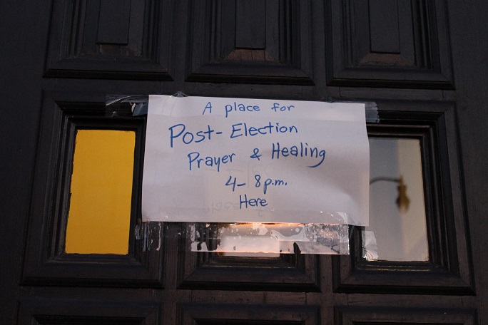 Racine---About two-dozen members of the Olympia Brown Unitarian Universalist Church met in the sanctuary Wednesday night, looking for answers and assurances in the wake of Donald Trump’s White House victory.