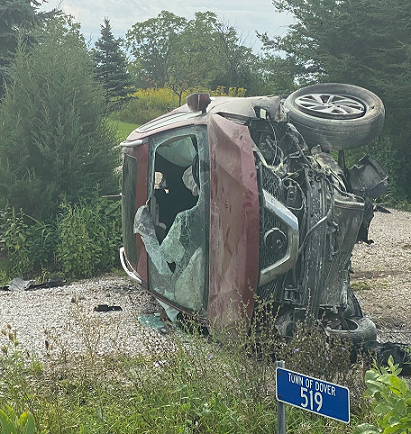 (WGTD)---A vehicle carrying two people rolled over off of State Highway 75 near Kansasville Monday morning around 9, injuring two people, one seriously.