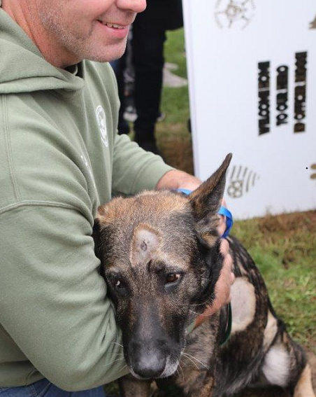 Tifft said at first he thought his dog’s injuries were a lot more severe than what they actually were. The bullet went through the upper portion of the dog's head and exited. The bullet hole was visible Sunday. Other than that, Riggs, in his appearance at the park, seemed a bit tired at times but otherwise appeared to be fine, posing for photos and hanging out with Tifft in the park for a half-hour.