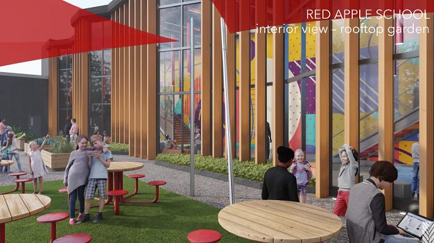 The new Red Apple will be designed to accommodate as many as 800 students with a continuation of its Science, Technology, Engineering, Allied Arts and Math theme.