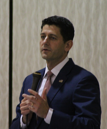 Ryan's only reference in his short remarks to politics had to do with political civility. Ryan noticed that not everyone in the crowd shared his political views, calling out by name several Democratic legislators who were also there. "We always got along personally," Ryan said of the three Democrats. "We represent old school politics and that does not mean it's old forever. We can revive civility in politics," Ryan said.
