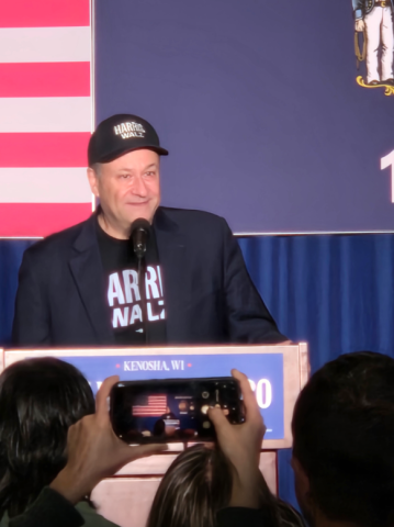 Harris’ running mate, Tim Walz, spoke at Memorial Hall in Racine earlier this week.