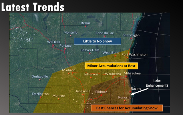 Just 2-4 inches are possible, with possibly some heavier totals near Lake Michigan. The bulk of the snowfall is expected to arrive Tuesday evening and continue into Wednesday.