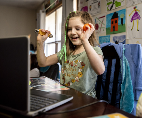 At the beginning of the 2021-22 school year, second grader L.B. enrolled in the Racine Unified School District’s virtual school in part because her younger brother is at higher risk of getting severely sick from COVID-19. Now, though, she loves it — she’s excelling in school, enjoying playing with her brother at home, and making friends.