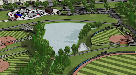 Up next for construction: A state-of-the-art, multi-purpose stadium and several baseball and softball fields along with a concession area and pedestrian plaza.