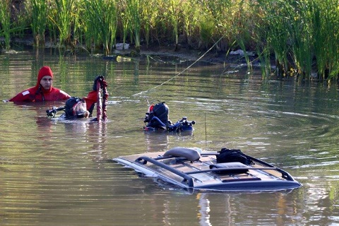 The site of the nearly submerged vehicle--with its headlights still on--sent firefighters and divers into the water in a frantic search for victims, both inside and outside of the vehicle. They found no one.