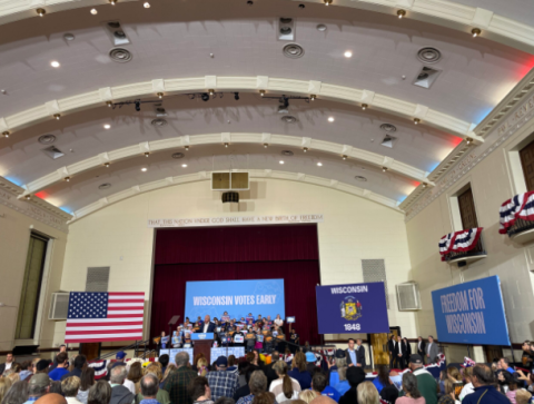 The two addressed thousands at the Alliant Energy Center in Madison, where Vice President Kamala Harris held a rally last month, and highlighted the final sprint of the election cycle.