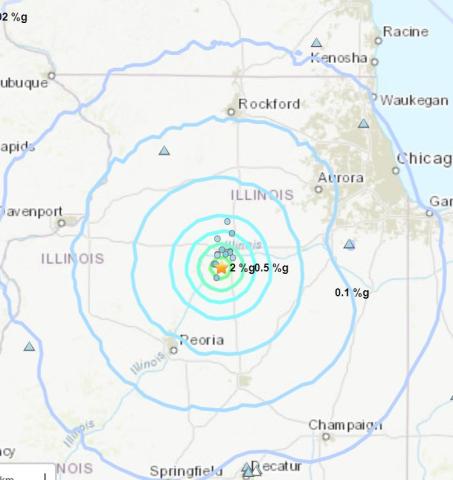 A USGS earthquake map indicated that the shaking may have extended into parts southern Wisconsin, southeastern Iowa and northwest Indiana.