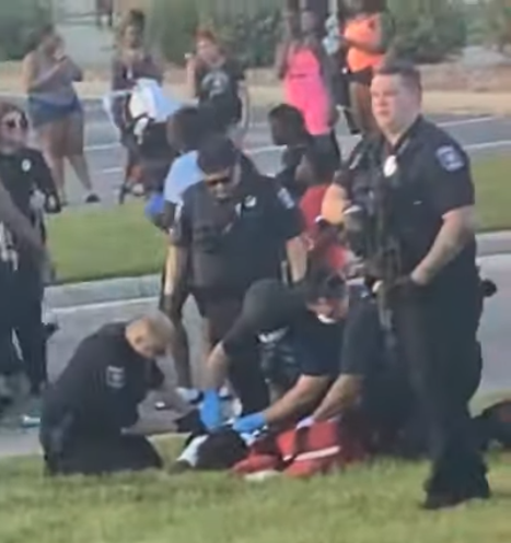 Video that Jones shot at the scene shows paramedics working on patients in the grass, with onlookers milling about while police tried to protect the area.