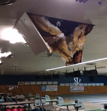 Kenosha---A HVAC worker was injured Sunday evening when he crashed through the ceiling at Sheridan Lanes.