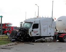 (WGTD)---A tanker truck loaded with liquid fuel of some sort remained upright and didn't rupture, even though the cab of the truck was heavily damaged in a pre-dawn collision with a car at a Pleasant Prairie intersection Saturday.