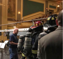 Although they weren't on the program, Kenosha firefighters took center stage for a time at the Kenosha Symphony's concert at Reuther High School Saturday evening.