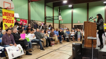 Racine---A rally to draw attention to a planned May 1st general strike and the lack of public appearances in the area by House Speaker Paul Ryan was held at the John Bryant Community Center Saturday. It drew about 250 people.