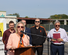 A groundbreaking ceremony was held Tuesday in the barricaded parking lot of Sun Plaza, where several buildings have already been