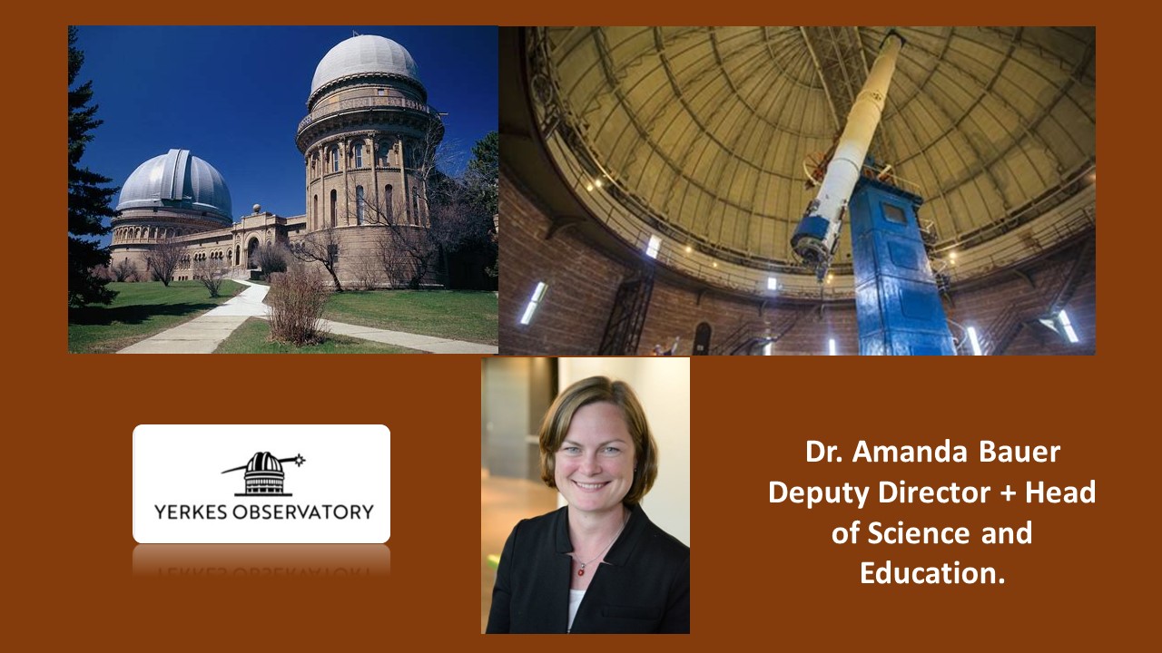 Dr. Sconzert's guest is Dr. Amanda Bauer is the Deputy Director of the Yerkes Future Foundation and lead the science, research, telescope operations, and education programs of the Observatory.