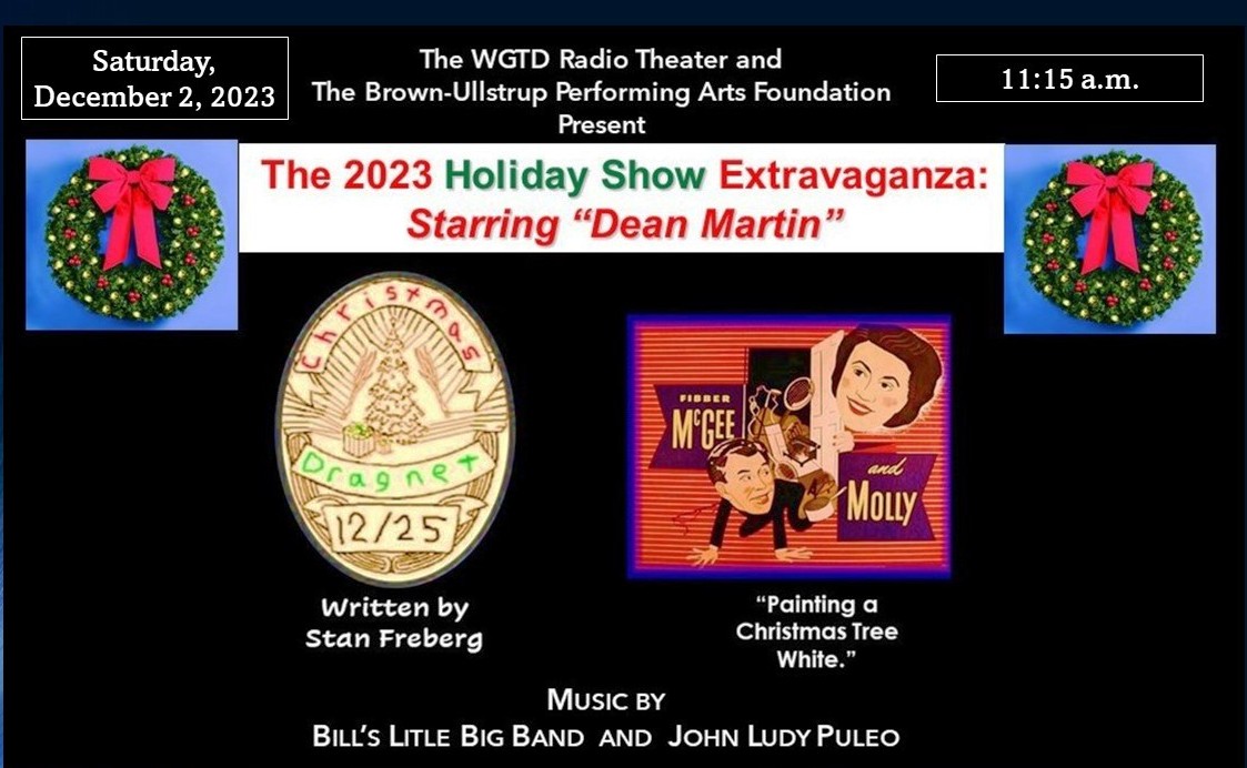 On Saturday morning December 2, 2023, at 11:15, the 30-time award winning WGTD Radio Theater, now in its 18th season, will broadcast live the Annual Holiday Extravaganza featuring Jim McClure as “Dean Martin.” Joining Jim, as Dean, will be actors from the 91.1 Players.